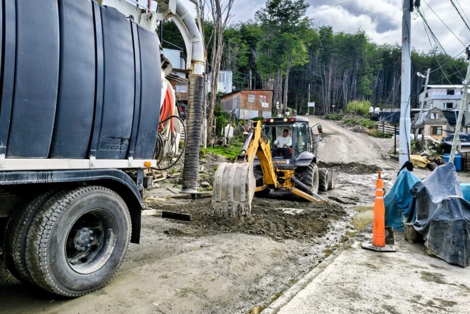 La mejora de las condiciones climáticas permite al personal del área de Servicios Públicos de la Municipalidad de Ushuaia avanzar con los trabajos de remediación en sectores de la ciudad que fueron afectados por el temporal de lluvia que se produjo días atrás. Desobstrucción de pluviales, limpieza de alcantarillas y reacondicionamiento de calles de tierra son algunas de las tareas que se llevan adelante teniendo en cuenta que, además, para este sábado están pronosticadas precipitaciones intensas. Uno de los lugares en los que intervino el personal municipal es la calle Anuka, acceso principal al barrio Kaupén y otros del Macizo KyD. Se trata de una arteria de pendiente pronunciada que fue severamente afectada por el caudal de agua. Allí se realizó la remoción de sedimentos y barro acumulado en pluviales, el recambio de tapas de los mismos, el retiro de residuos y el emparejamiento de la calzada con motoniveladora. La secretaria de Planificación e Inversión Pública del Municipio, Belén Borgna, recordó que por la cantidad de agua caída y la topografía de la ciudad “colapsaron los sistemas de drenaje” y eso afectó a distintos barrios, pero “en términos generales la red funcionó bien porque se realiza mantenimiento todo el año”. Finalmente, expresó que tras el temporal “se aceleraron las tareas de mejoramiento y prevención a cargo del personal de distintas áreas del Municipio”.