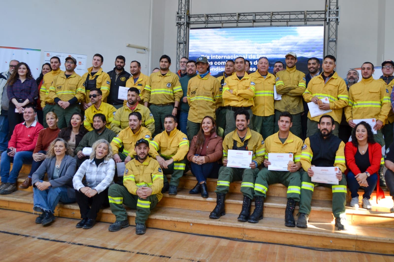 El Gobierno de la Provincia, reconoció a las y los combatientes de incendios forestales con motivo de conmemorarse su día el pasado 4 de mayo. En esta oportunidad, este sábado, se realizó el acto oficial en la ciudad de Tolhuin, en agradecimiento a la importante tarea que llevan adelante las brigadistas forestales en su lucha contra el fuego. El Gobernador, Gustavo Melella, este sábado, participó del acto de cierre del programa provincial “Desarrollando Emprendedores”, no obstante antes de dar inicio, dirigió unas palabras a las y los combatientes de incendios forestales. “Desde el Gobierno hoy estamos homenajeamos, en Tolhuin, a todos los que luchan contra los incendios forestales, así que queremos hacer llegar nuestro saludo a quienes han trabajado incansablemente en los incendios que tuvimos en la Provincia, pero también en todo el país y en todo el mundo” aseguro el Mandatario Provincial.