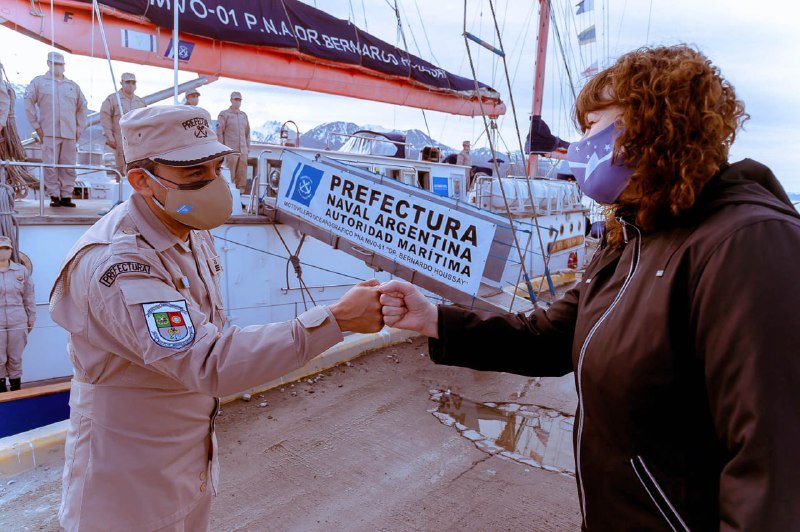 La vicegobernadora de la Provincia de Tierra del Fuego, Antártida e Islas del Atlántico Sur, y Presidenta del Poder Legislativo, Mónica Urquiza dio la bienvenida a la tripulación del “Dr. Bernardo Houssay”. La Vicegobernadora fue recibida por el Capitán Prefecto Principal Pablo Andrés Pérez Segovia y estuvo acompañada por el Presidente de la Dirección Provincial de Puertos, Roberto Murcia. Asimismo, ambas autoridades intercambiaron presentes protocolares. El motovelero “Dr. Bernardo Houssay” zarpó de la ciudad autónoma de Buenos Aires, el 28 de agosto y arribó a nuestra ciudad el pasado lunes en horas de la mañana; fue acompañado hasta nuestro puerto, por el Guardacostas de la Prefectura Naval Argentina y veleros pertenecientes a distintos clubes náuticos de Ushuaia. La embarcación tiene como principales funciones el estudio del ambiente marino, la formación de sus tripulantes y la profesionalización en materia de navegación.