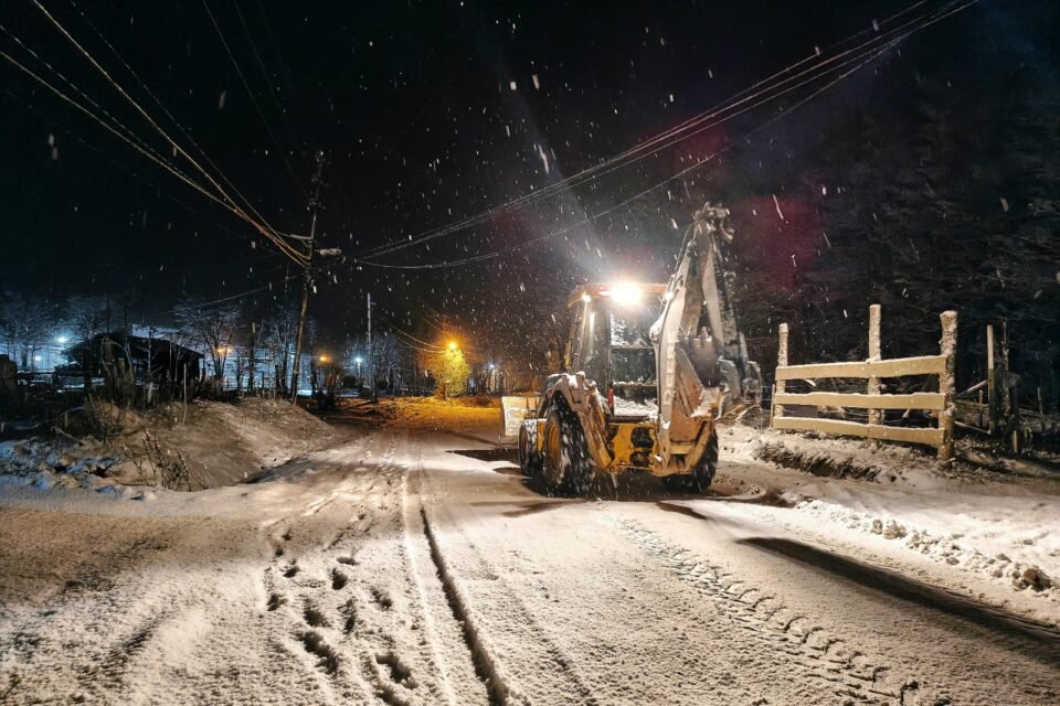 En el marco del Operativo Invierno la Municipalidad de Ushuaia lleva adelante trabajos de despeje de nieve y acondicionamiento de la red vial en distintos sectores de la ciudad, para garantizar la transitabilidad vehicular y peatonal. Desde la Secretaría de Planificación e Inversión Pública se informó que en las primeras horas de este miércoles, una vez finalizadas las precipitaciones más intensas, se avanzó con la dispersión de sal en el circuito vial primario. Además, personal municipal intervino con maquinaria propia en Andorra, Dos Banderas, Escondido, Obrero, Ñires, ATE y Ecológico, entre otros barrios. Paralelamente, se realizó la limpieza de escaleras, veredas y otros espacios de uso comunitario. El Municipio dará continuidad a estas tareas a lo largo de la jornada en función de la intensidad de las nevadas.